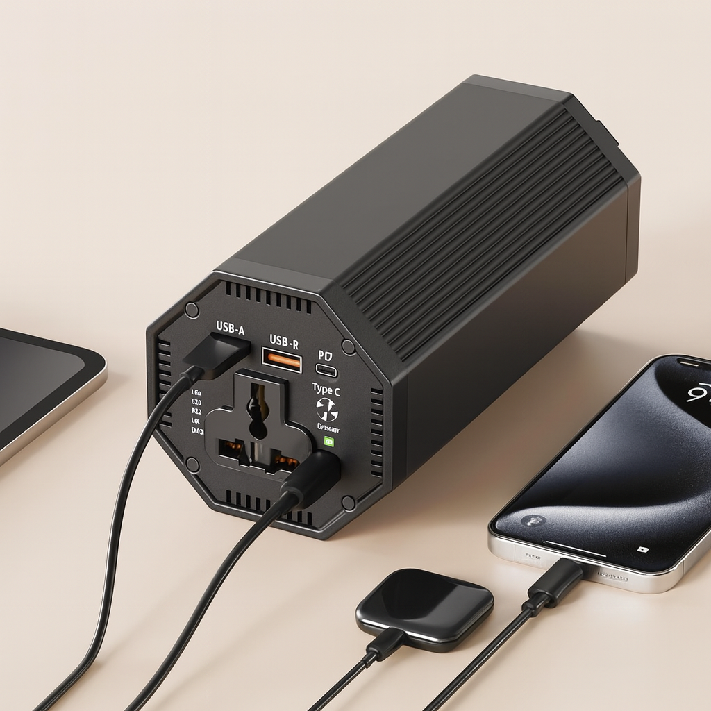 It powers devices up to 100W, including laptops, smartphones, cameras, drones, and more, with multiple ports for simultaneous charging.